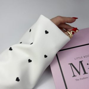 Mouw in blazerstijl, crèmewit met zwarte hartjes